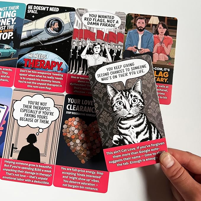 - 【Love Oracle Cards】Love Edition is here to snatch your rose-colored glasses and throw them straight into the sea. This hilariously savage 72-card oracle deck delivers brutally honest messages about love, dating, heartbreak, and those “what-the-actual-hell” relationship moments